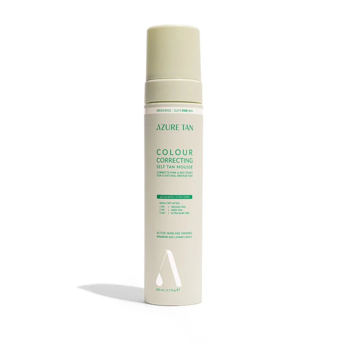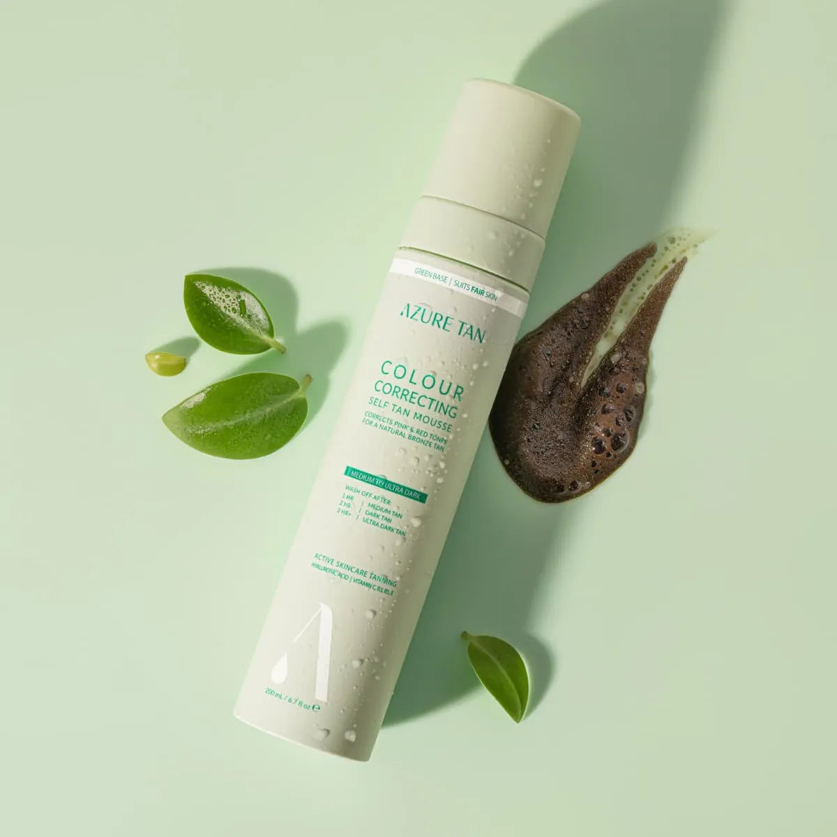 Azure Tan Green Base Mousse is a colour correcting tan to neutralise pink/red undertones for an olive brown tan. This product also doubles as a skincare treatment for the body to help fight signs of ageing and leave the skin hydrated and nourished.